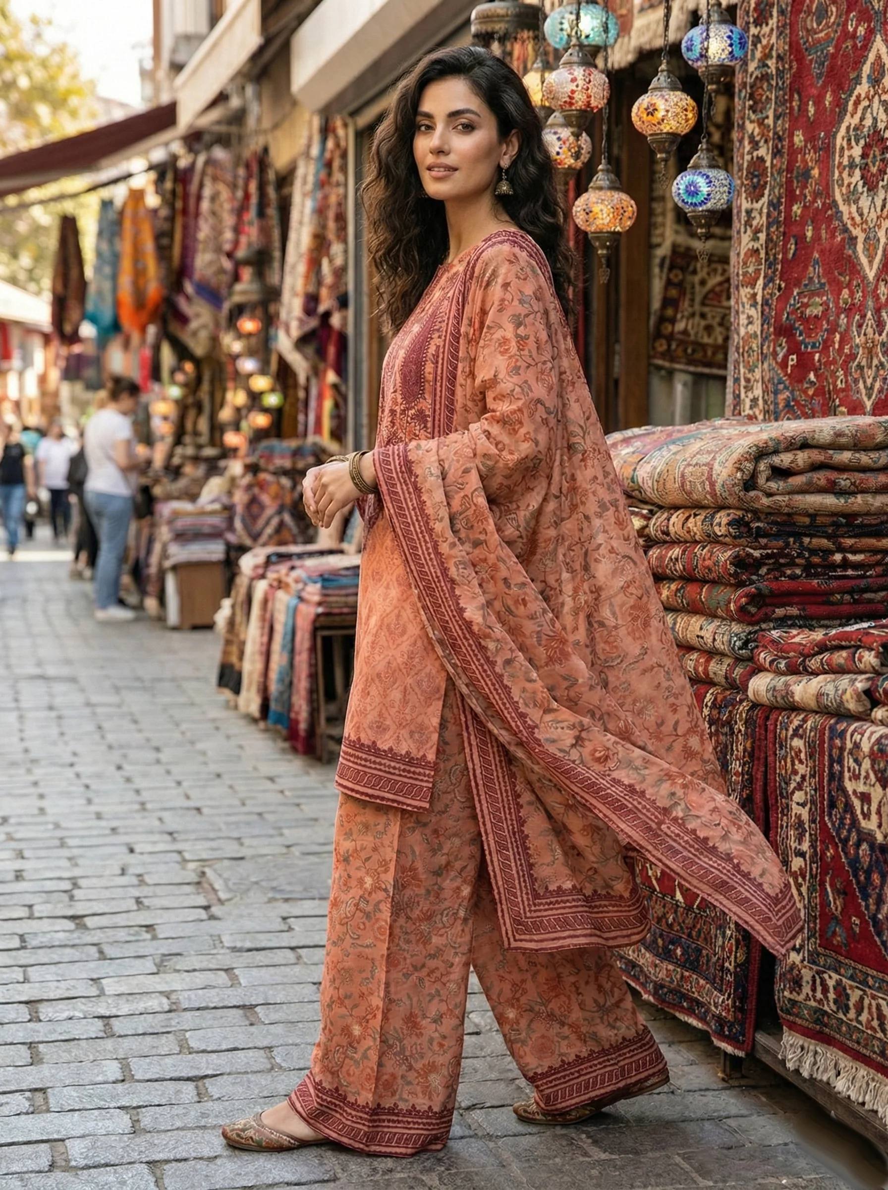 PRINTED SILK LAWN GHARARA