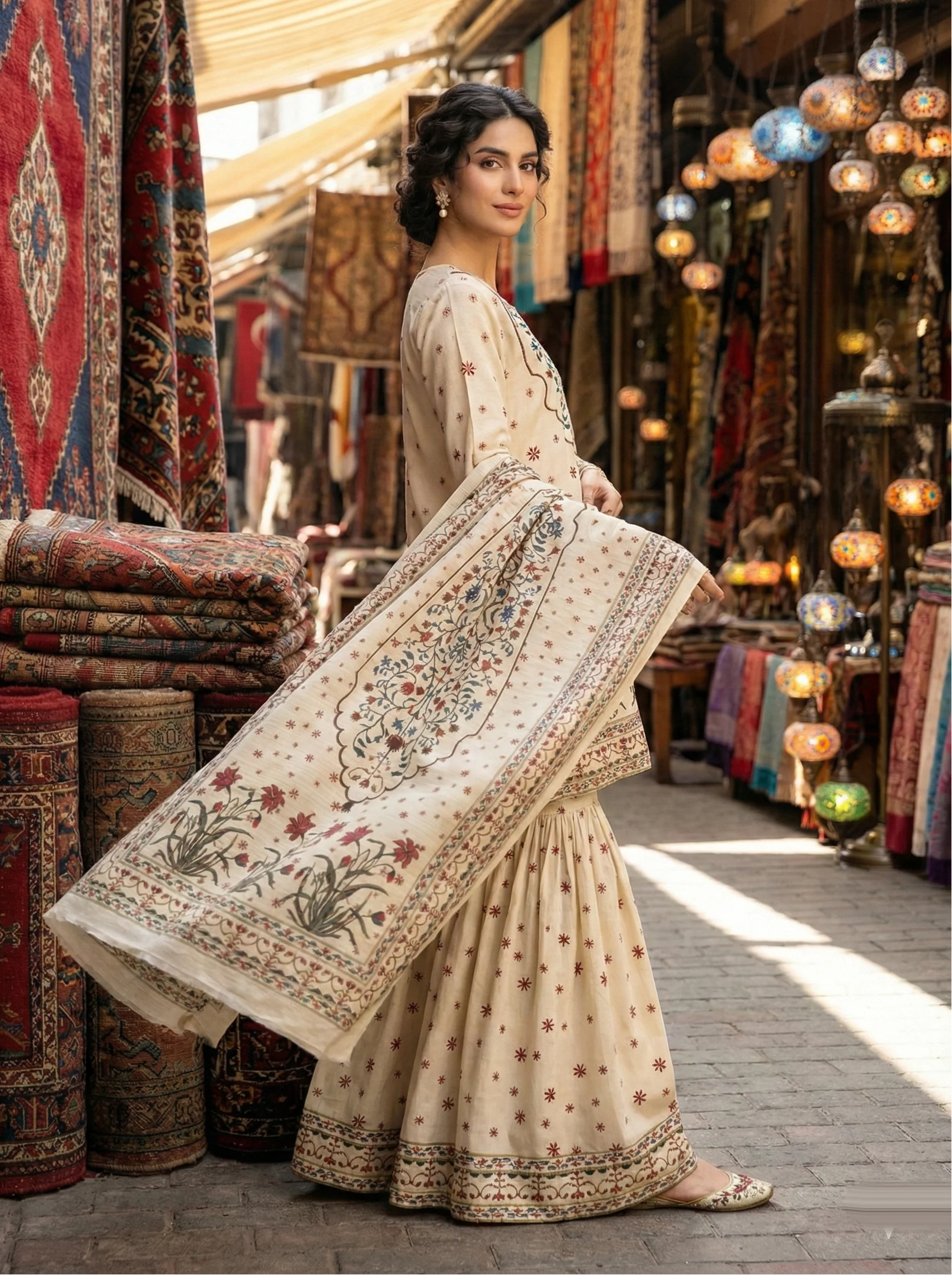 PRINTED SILK LAWN GHARARA